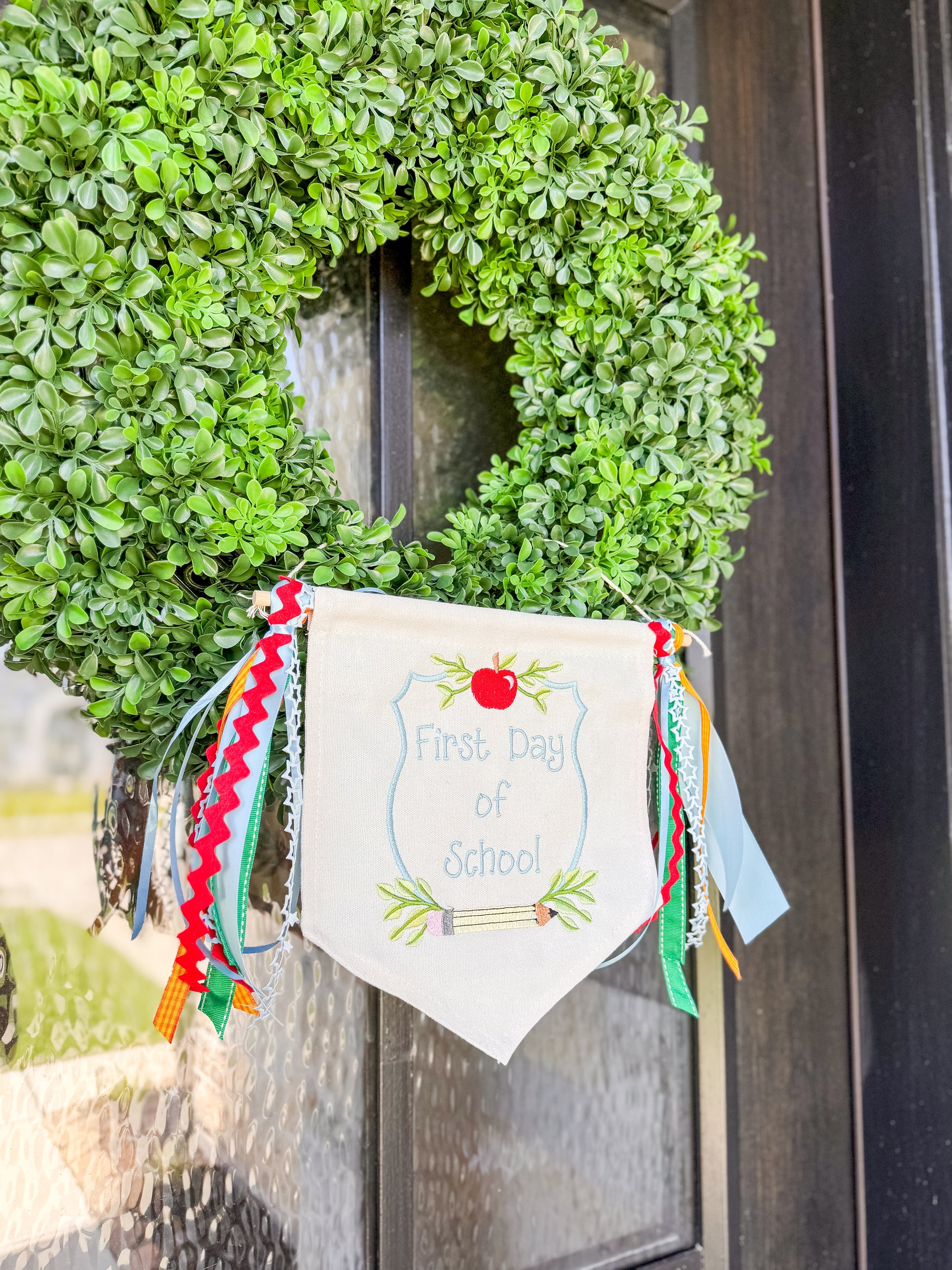 This adorable duo is perfect for capturing those sweet back-to-school photo ops. The embroidered banner adds a personalized charm to any door, porch, or photo backdrop, while the matching wand brings a fun pop of color your little scholar will love waving around!