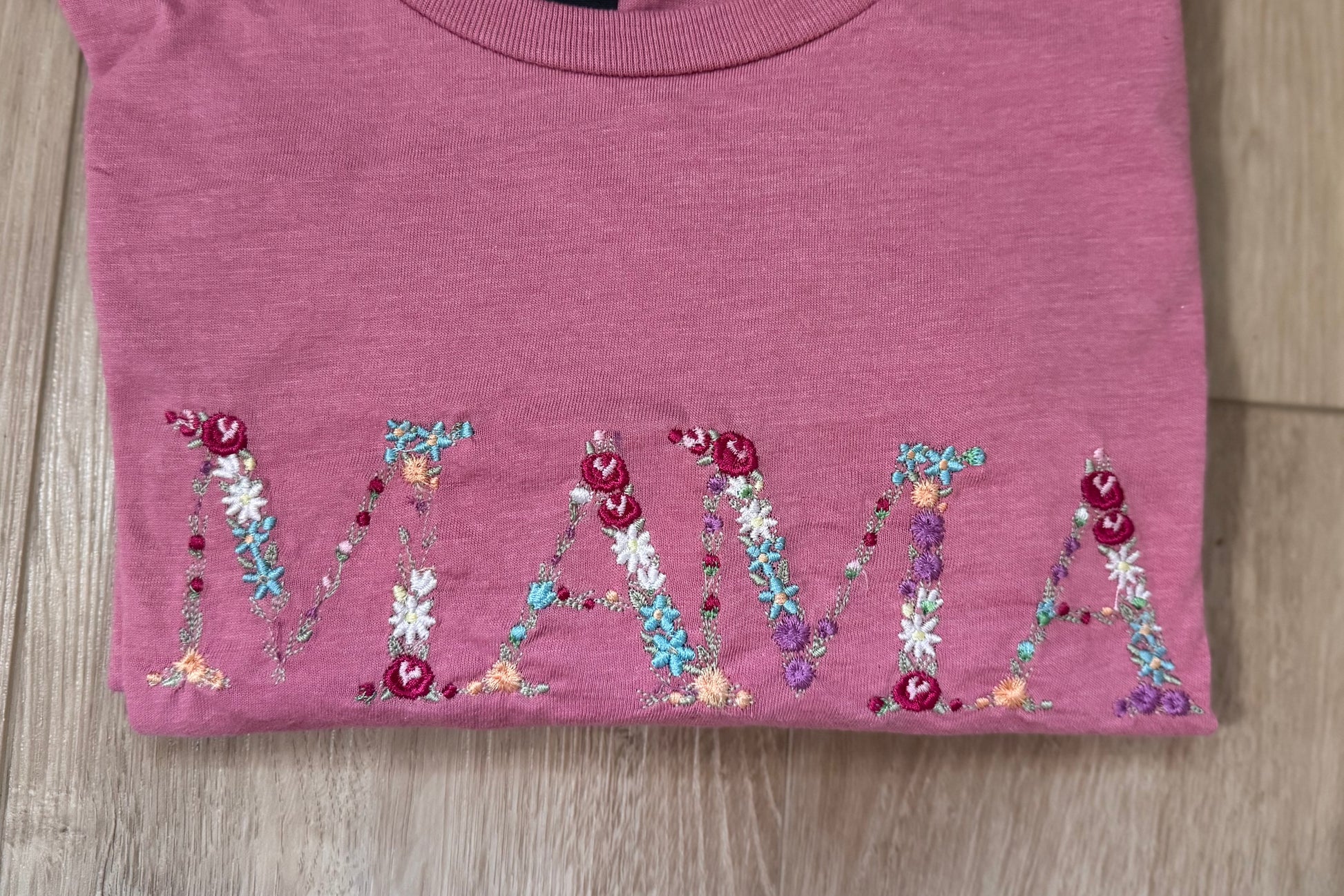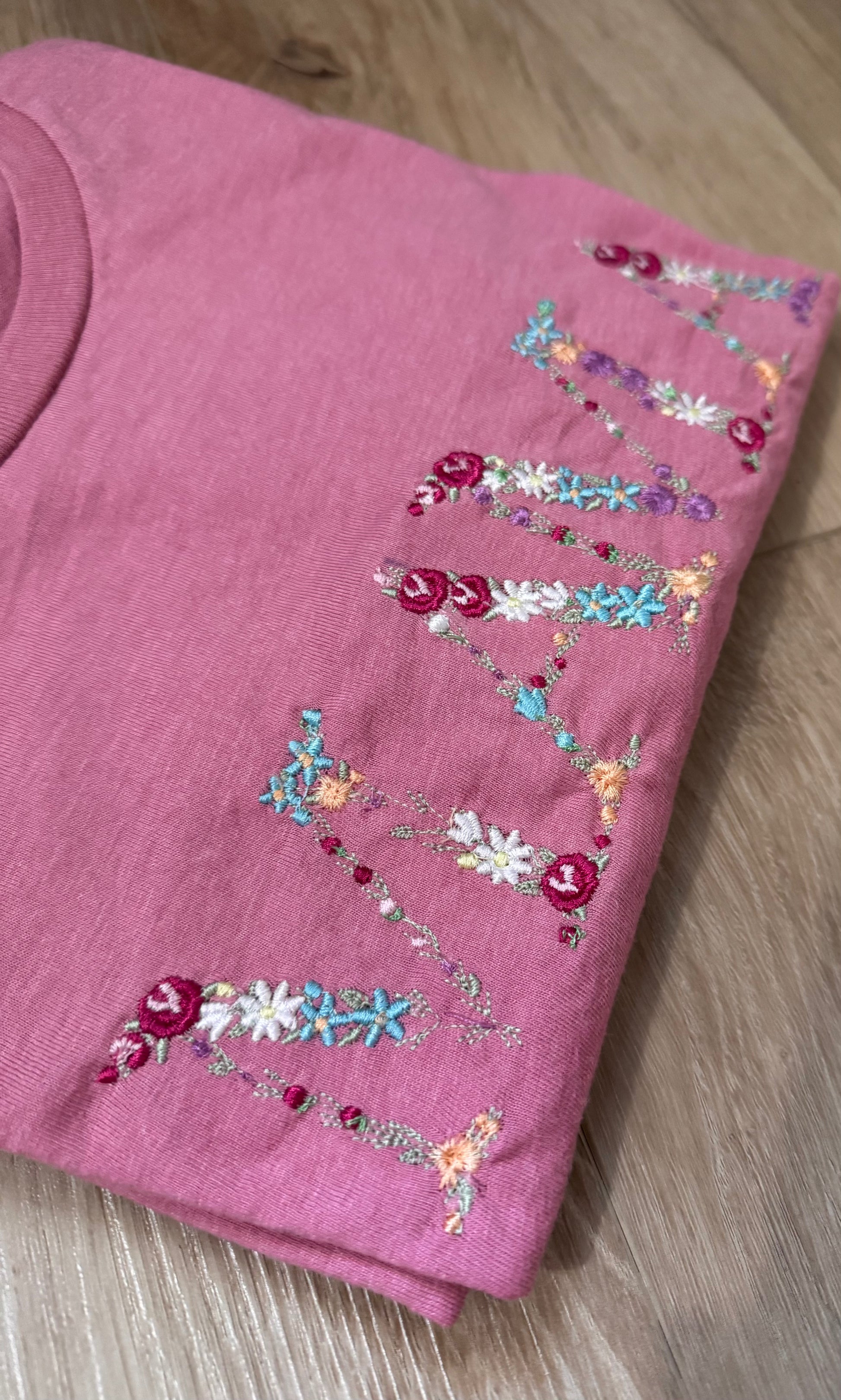 • Embroidered “MAMA” floral letters